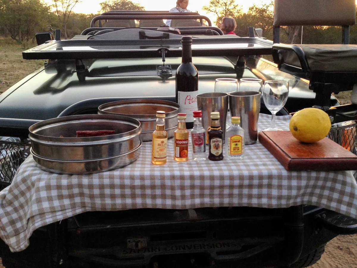 Safari drives start just before dawn and just before dusk and can last from 3-4 hours. The time flies so quickly, you'll hardly realize how long you've been gone. Along the way, you'll pause to stretch your legs and can take a bush bathroom break - tissue and paper baggie included. Don't be shy about it! If you have to go you have to go. You'll again have a chance to snack on morning coffee and rusks (think biscotti, but heartier) and evening sundowners and biltong (ask for gin and tonic, a classic safari drink).